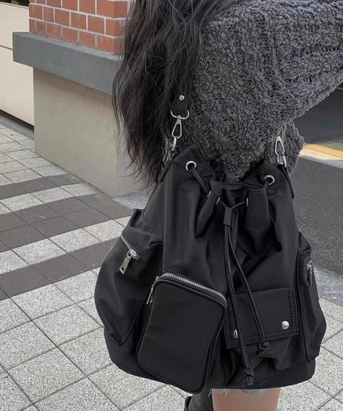 【収納力抜群の多ポケットデザイン】フロントや両サイドに配されたジップ&フラップポケットが実用的。スマホや鍵、ペットボトルなどの小物も仕分けしやすく、荷物の多い日にも頼れる容量です。