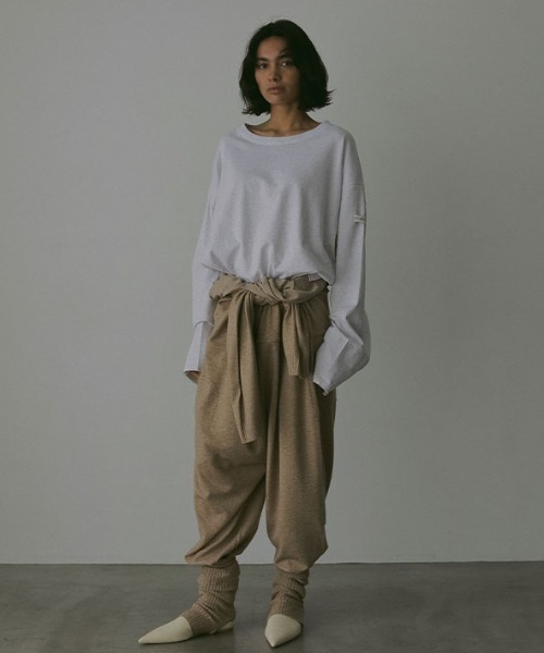 付属のリブ編みで仕上げたレッグウォーマーが、スタイリングの幅を広げるアクセントに。