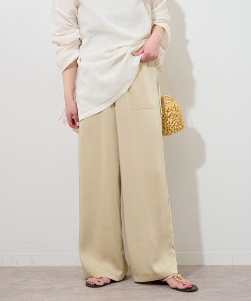 上品な光沢のサテン生地が魅力のベイカーパンツ。