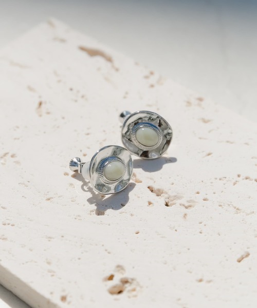 飾りボタンをイメージした個性的なデザインのメタルイヤリング。