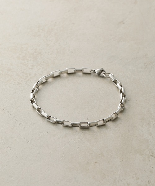 【スクエアチェーンが目を引くステンレスブレスレット】程よいボリューム感とシンプルなデザインが魅力の、ステンレス製ブレスレット。