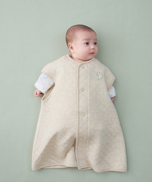 【素材】肌に触れるキルトの両面は綿100%で、やわらかくあたたかなニットキルト素材を使ったベスト型のスリーパー。