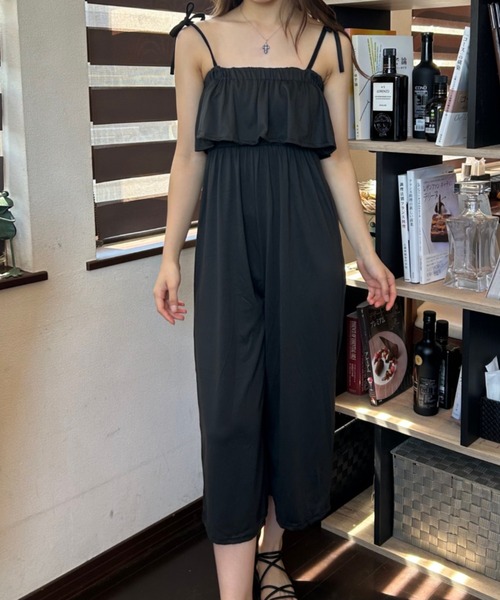 肩の力を抜いたリゾートスタイルにぴったりな、フリルデザインがポイントのキャミソールサロペット.