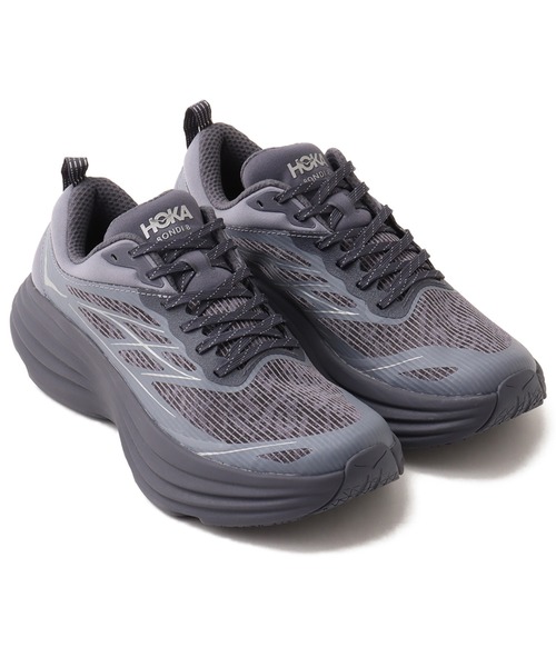 ロードランニングシューズをアウトドアにインスパイアされたフィルターを通して再構築した、ステルス/テック ボンダイ 8 ケージド (STEALTH TECH BONDI 8 CAGED )