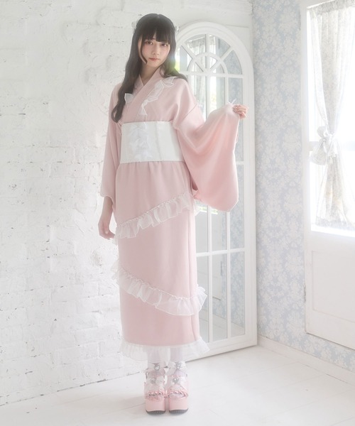 シアーフリルと袖リボンが今っぽかわいい浴衣です♪