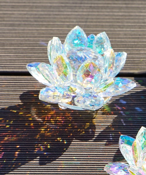 重なったガラスの花びらに太陽の光が反射し、空間に美しい光を散りばめるサンキャッチャーとしても◎