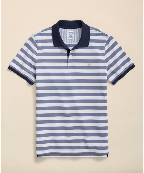 アメリカ産スーピマコットン素材を使用した半袖ポロシャツ快適な着心地と高い耐久性を兼ね備えた、毎年人気のポロシャツです。ホワイトパンツやショーツが似合いそうな、爽やかなマリナーストライプ柄。タウンユースから、テニスやゴルフなどのスポーツまで幅広く着用可能です。シグネチャーであるGF(ゴールデン フリース)ロゴ刺繍が、スポーティーなデザインに品格とアクセントを添えます。