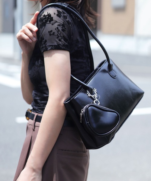 エナメル調のPUレザーを横長シルエットに仕立て、チェーンハートを取り付けたおしゃれな韓国風デザイン。