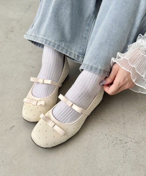 ・旬のドット柄とミニスタッズがランダムに配置されているバレエパンプス