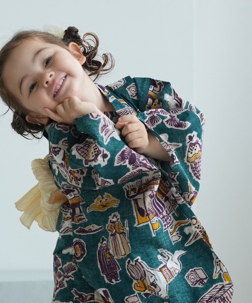 個性派きものブランドNicoAntiqueの新作 こども浴衣セット ( ゆかた・帯・下駄 ) 3歳 4歳 5歳 6歳 7歳 8歳 9歳 10歳 レトロ キッズ 国産生地 国内染色
