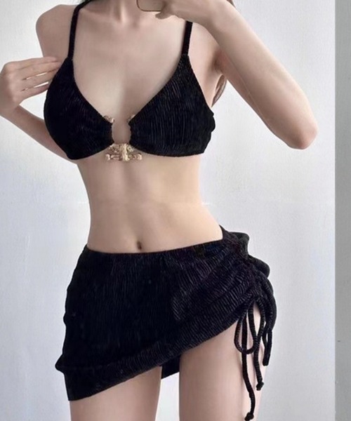【MKTM select】シャーリングゴールドパーツビキニセット(3色展開/フリーサイズ)■説明トレンド感たっぷりのシャーリング素材に、ゴールドパーツが映えるビキニセット。