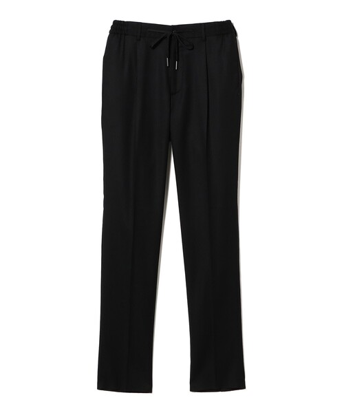 軽快に着こなしたい1着ブランド定番の『DAKAR』シリーズのスーツの組下パンツが単品で登場。ウエストがゴムとドローコードのシャーリング仕様の1プリーツパンツです。スーツに用いられやすいSuper110'sのウールをメインとした混紡生地を使用。コンフォータブルな着心地でシーズンの着こなしを彩る1本です。