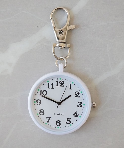 バッグに付けたり、鍵に付けて一緒に持ち歩ける、アナログ時計のキーホルダー。