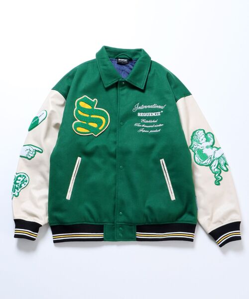 参考商品名:【SEQUENZ】POP MOTIF STADIUM JACKET / サガラ ワッペン 刺繍 フェイク メルトン 衿付き スタジャン
