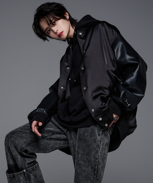 素材:表地 : ポリエステル100% 別布 : 合成皮革 100% 裏地 : ポリエステル 100% リブ : ポリエステル 98%ポリウレタン 2%