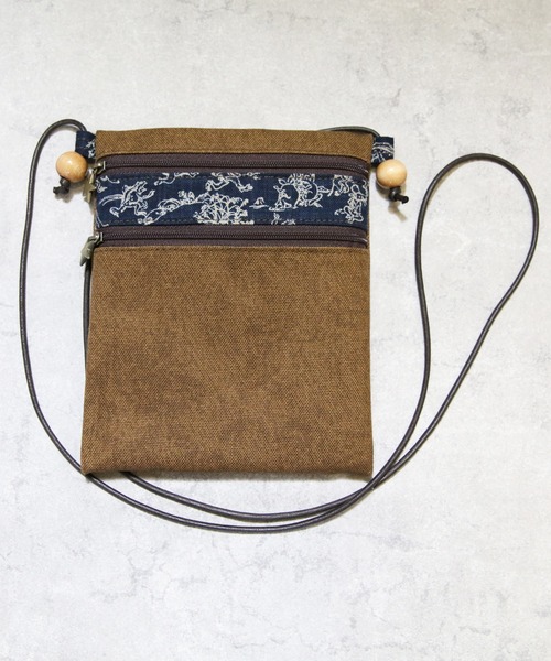 京の伝統技法・酒倉染めを活かした、風合い豊かな2ファスナーポシェット。