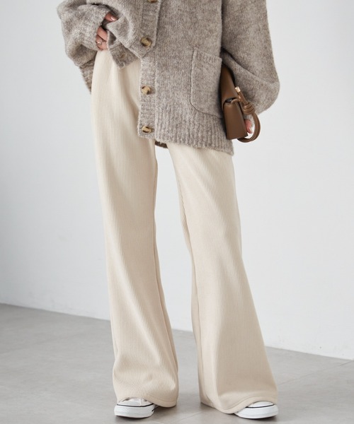 ニットコールの太ウネが可愛い!縦ラインでスッキリ美脚見えするフレアパンツ。