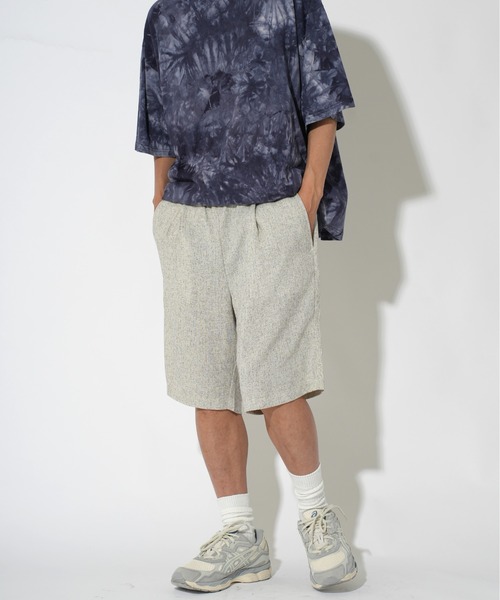 サマーツイードショートパンツ■pointツイード特有の立体感のある凹凸があり、軽やかさと高級感を両立したアイテム。同ブランドのツイードクルーTeeをご購入いただくとセットアップとしても着用できます。 ■sizeベーシックなストレートシルエットで膝丈のどんなトップスとも合わせやすいシルエット。 ■fabricポリエステル・レーヨンの混紡糸を使用し、ナチュラルなネップと節のある表面感で、ツイード調の上品な表情を演出。見た目とは裏腹に、清涼感のあるドライなタッチで、暑い季節でも快適に着用いただけます。