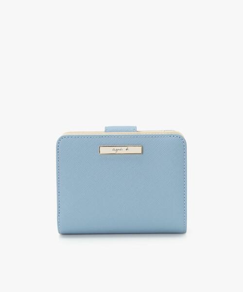 角に丸みをもたせたフォルムとフロントのプレートロゴが特徴的な二つ折りウォレットです。