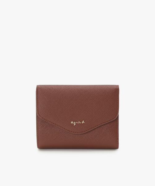 カーブを描いたフラップラインとゴールドロゴの組み合わせが上品さを引き立てる二つ折りウォレットです。