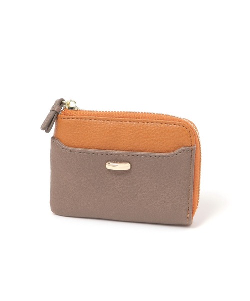 【デザイン】バイカラーのカードケース。お札を二つ折りにして収納できるサイズで、お財布としてもお使い頂けます。フロントにメタルパーツを付け高級感もしっかりあります。内装側に鍵等を付けられるキーホルダーを付けています。