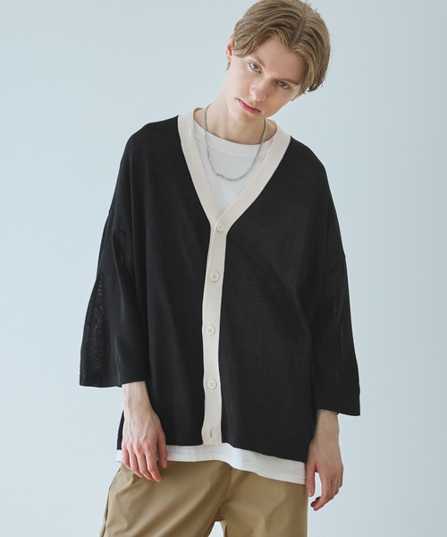 参考商品名:ハイゲージ襟配色5分袖サマーカーディガン