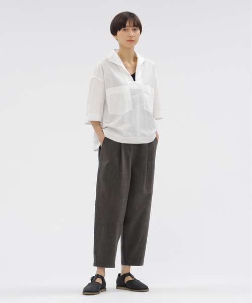 フラップ付きのバックポケットやサイドジップ、イージーな腰まわりの仕様など、機能性とデザインのバランスが際立つ一着。