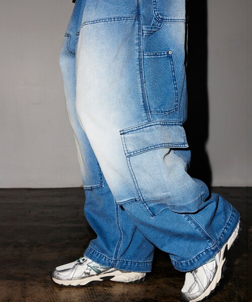 フェード加工が施されたダブルニー仕様のカーゴパンツ。ハンマーループやサイドパッチポケットなど細部までペインターパンツのディテールを忠実に再現しつつ、両脇にカーゴポケットを付けMIXさせたデザインが特徴です。