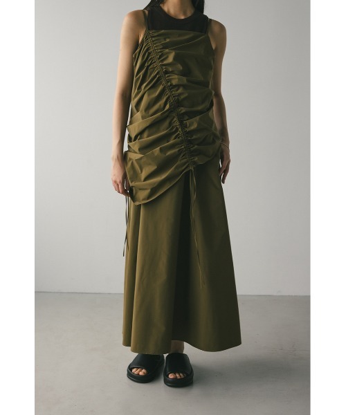 シャーリングレイヤーデザインが映えるキャミワンピース。