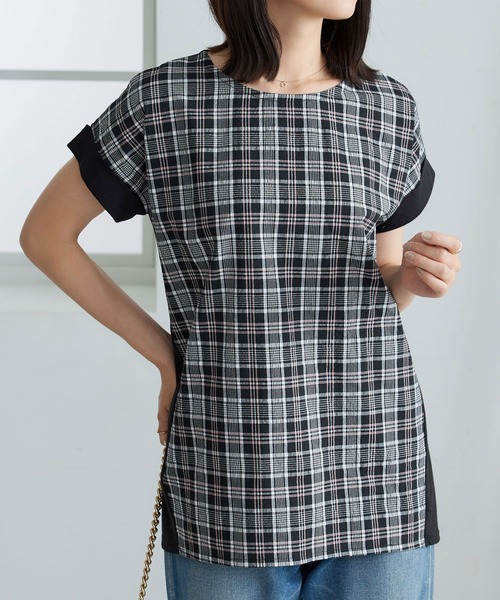 《 表面感のあるサッカー素材が夏に嬉しい!チェック柄が可愛いプルオーバー 》【ポイント】