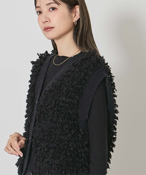 表情豊かなループ編みと、洗練されたVネックシルエットが魅力のニットベスト。