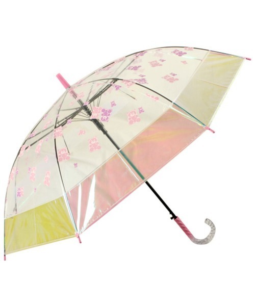 【ポップでキュートなビニール傘】・クリアな傘生地に、オーロラカラーや可愛らしいプリント柄をプラス。
