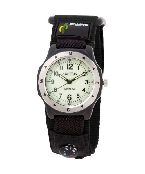 バンドは着脱がラクにできるマジックテープ式で、好奇心旺盛な男の子の冒険心を刺激する方位コンパスも搭載しました!さらに、文字盤・針には蓄光作用があり、暗闇でも視認性ばっちり。