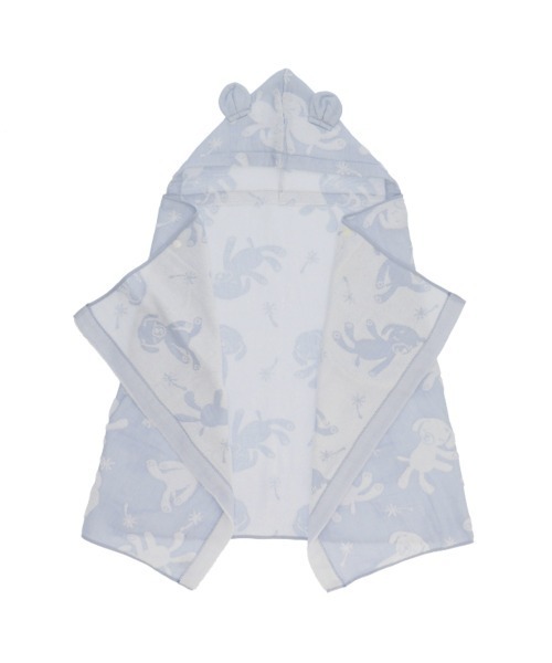・フード付きなので、さっと羽織れば、髪や体の水分もしっかり吸収できる!・胸元にスナップボタン付きで使いやすい!・軽さと柔らかさを感じられるように、ガーゼ部分に細く繊細な糸を使用。