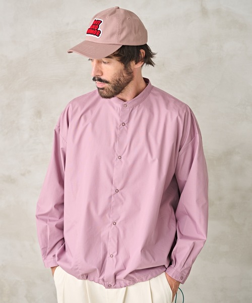 上品な印象のバンドカラーがワイドサイズを上品に仕上げるポイント。