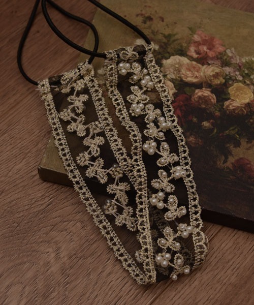 キラキラのレース刺繍とパールがデザインされたカチューシャ風ヘアバンド
