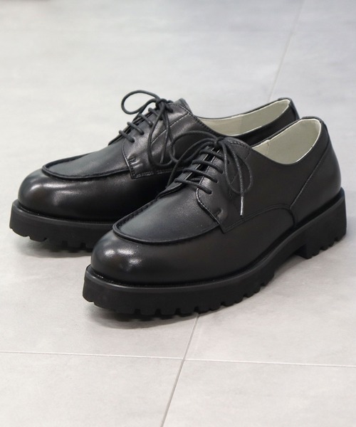 着こなしを選ばないシンプルなデザインで、オンオフ問わず幅広く活躍してくれるUチップシューズは、1足あると非常に便利。柔らかなレザーに、クッション性のある合成ソールの組み合わせなので、普段革靴を履き慣れていない方でも履きやすいです。丸みとボリュームのあるフォルムに、厚みのあるアウトソールを合わせた全体のボリューム感が絶妙。FUDGE・古着系や、シンプル大人ファッションにはマストアイテム!Paraboot(パラブーツ)や、KLEMAN(クレマン)はちょっと手が出ないな…という人にもおすすめです。