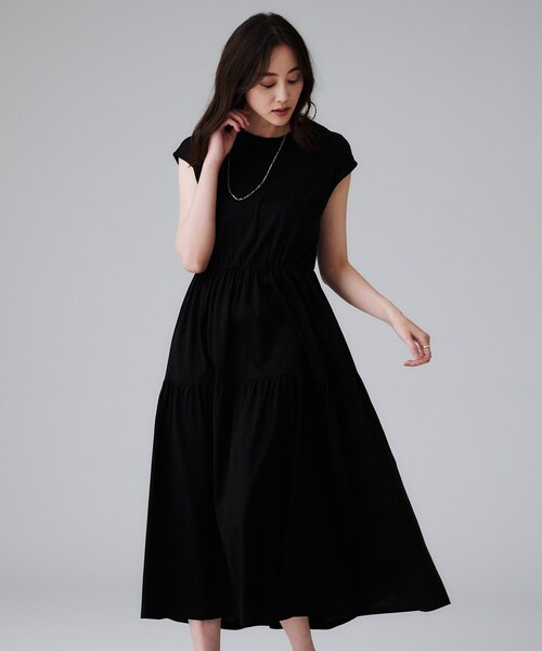体にフィットしすぎず、エレガントにもこなせるワンピースなので1枚着るだけでオンにもオフにも。