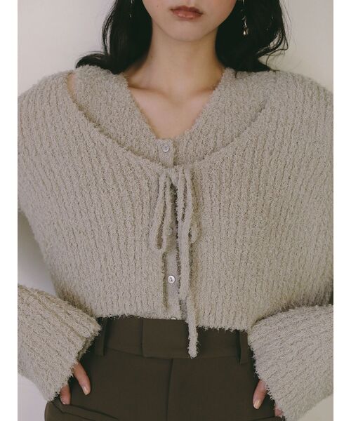 カーデにはフレアスリーブを採用し動きのある女性らしいデザインを採用。