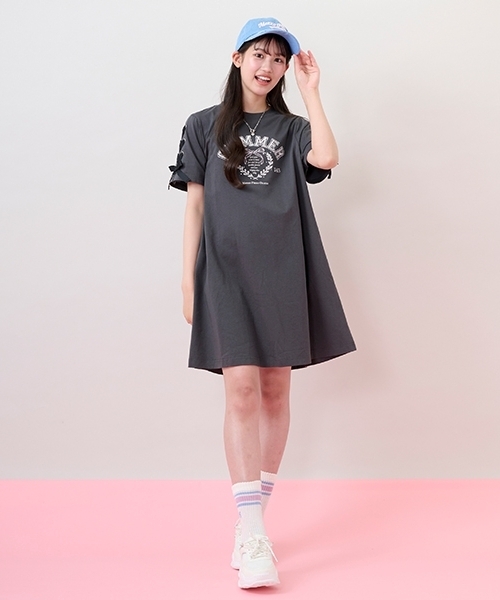 商品名:【接触冷感】リボンカレッジロゴTシャツワンピース