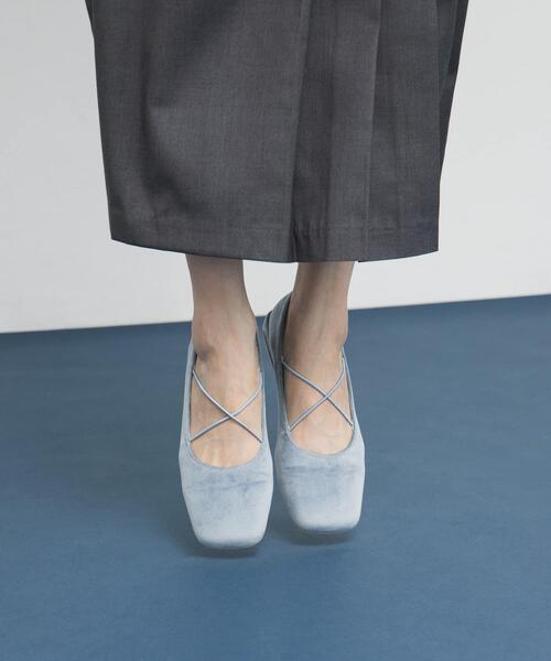 【スエードライクな素材が可愛いクロスバレエシューズ】スエードライクなファー素材がかわいいクロスバレエシューズ。ラウンドトゥデザインや、華奢なクロスゴムデザインが女性らしい印象にしてくれます。着脱もしやすく、靴下を合わせても全体的に柔らかな雰囲気になるよう仕上げました。定番のBLACKと、差し色にぴったりなBLUEをご用意しております。
