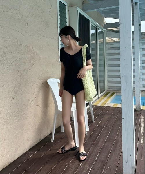 【フロントギャザーショートスリーブスイムウェア】