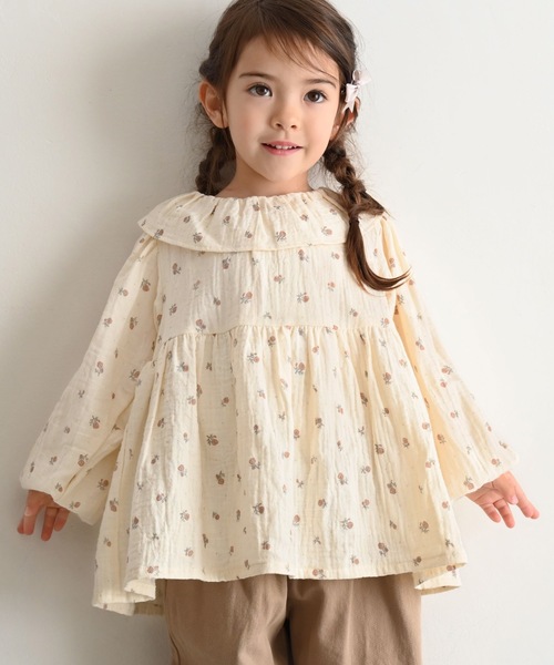 ブラウス シャツ 衿フリル ブラウス ダブルガーゼ キッズ 子供服 女の子