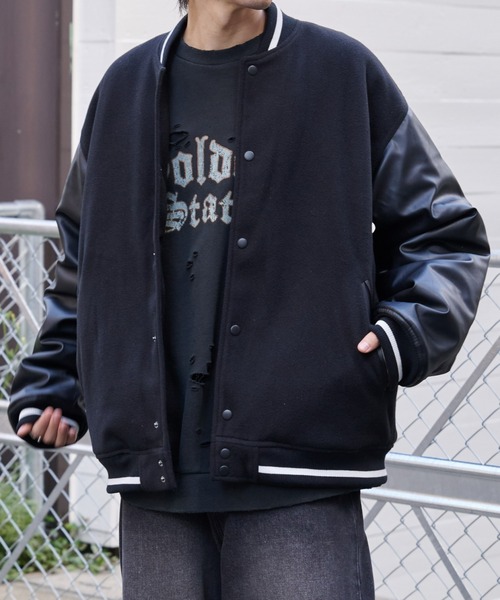素材:表地: ポリエステル100% 裏地: ポリエステル100% 中綿: ポリエステル100% 袖部分: 合成皮革 リブ部分: ポリエステル95%, ポリウレタン5%