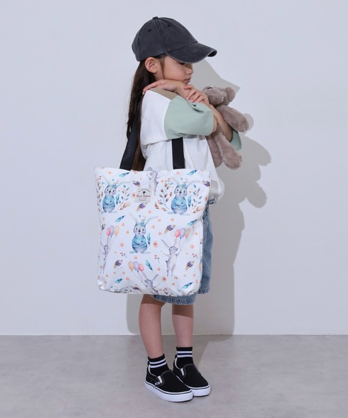 カラフルで楽しい総柄が目を引くKIDSレッスンバッグは、おけいこや通園・通学に大活躍。