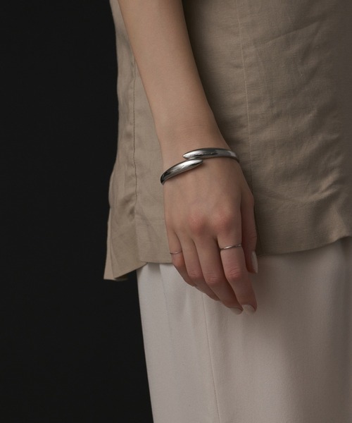 手元に纏う、曲線美が映えるバングル。大胆でありながら、どこか品のある佇まいで滑らかなカーブと光沢が動くたび光をとらえ、印象的な手元を演出します。ひとつ加えるだけで、いつものスタイリングにモードな余白を。