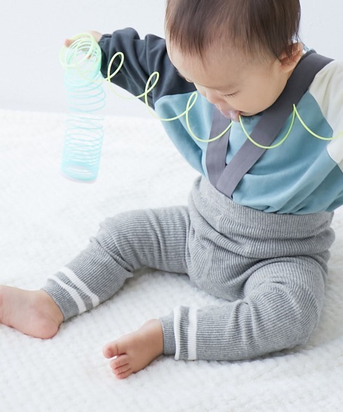 ストレッチ性のあるサスペンダー付きレギンス。セパレートを着せたいけれど、ボトムスのずれ落ちが気になる時期におすすめのアイテムです。