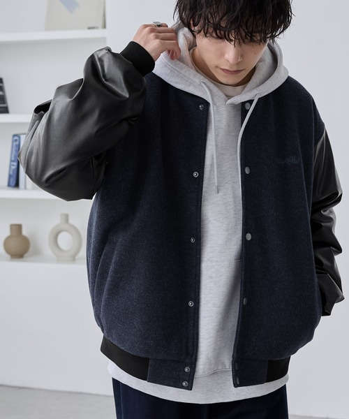 参考商品名:チェーン刺繍コンビメルトンオーバーサイズスタジャン