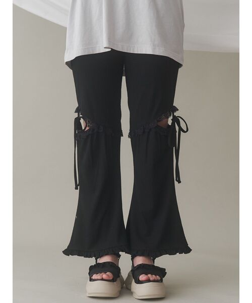 レースの間から揺れるリボンが可愛いフレアパンツです。