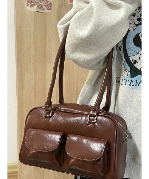 アウトWポケットロングハンドルバッグ